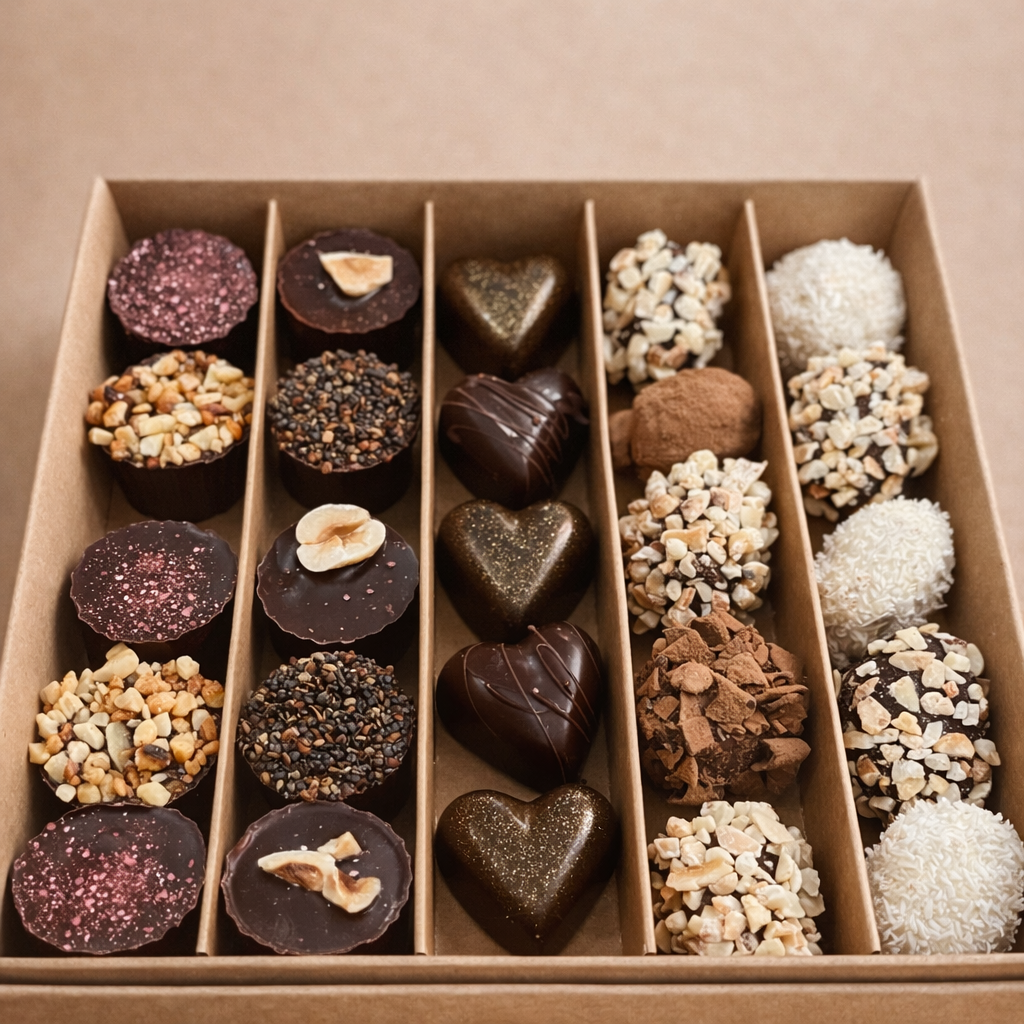 Un caja para disfrutar nuestras trufas al estilo belga tradicional. 25 piezas surtidas de bombones y trufas, elaboradas con chocolate belga ecológico 83%.